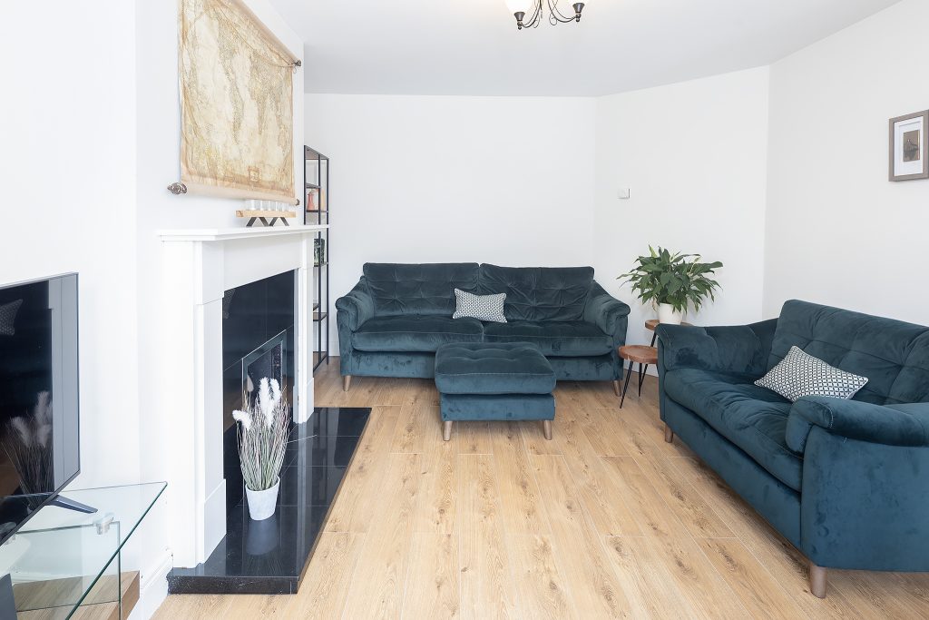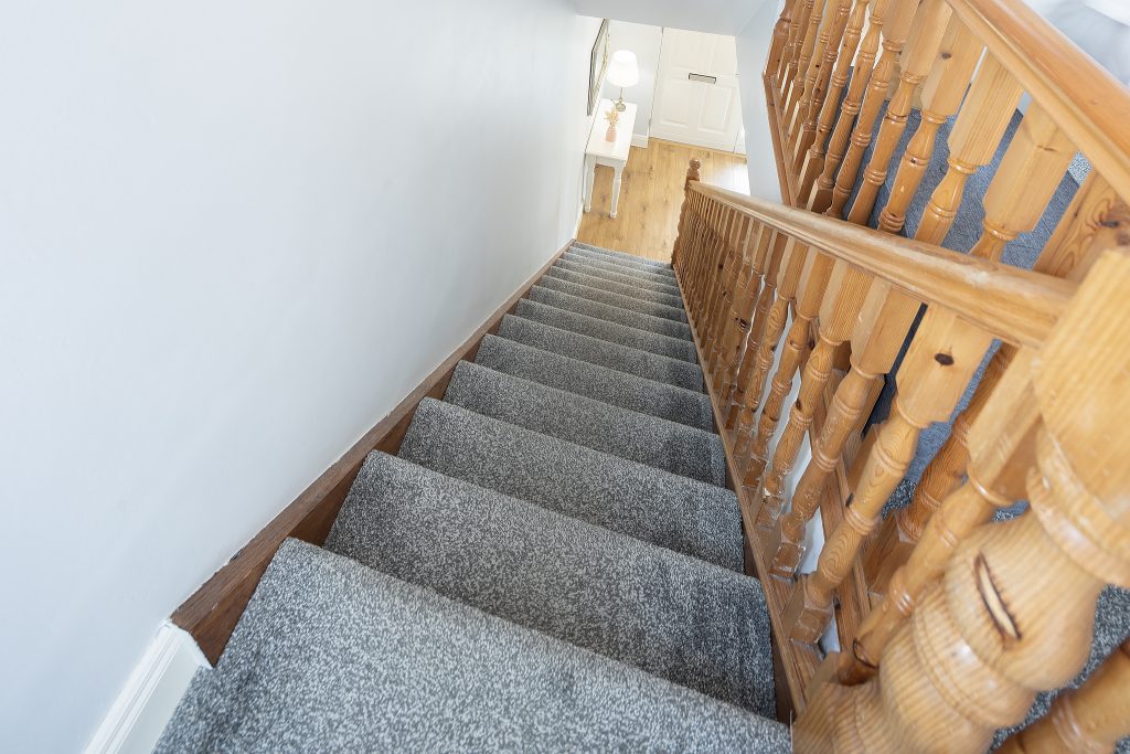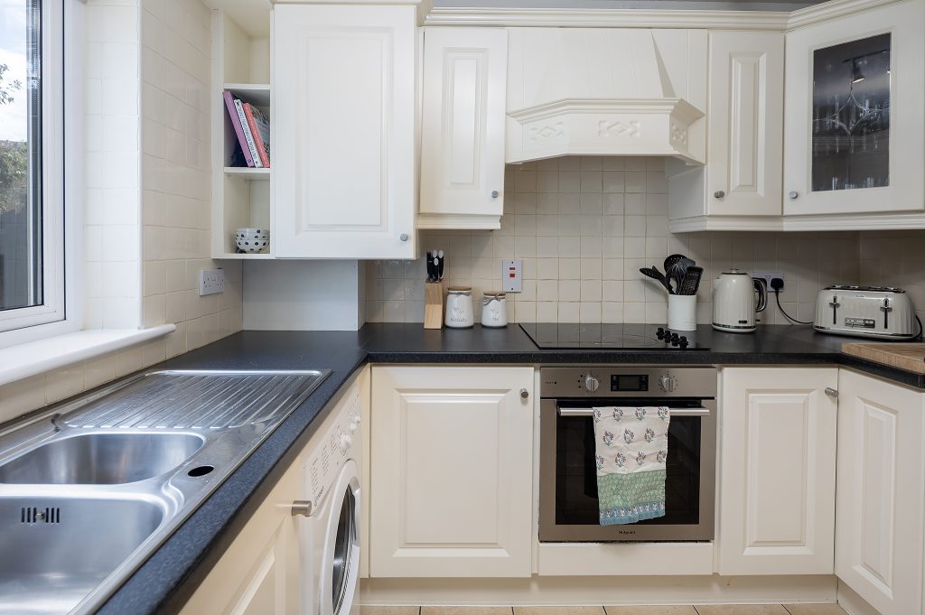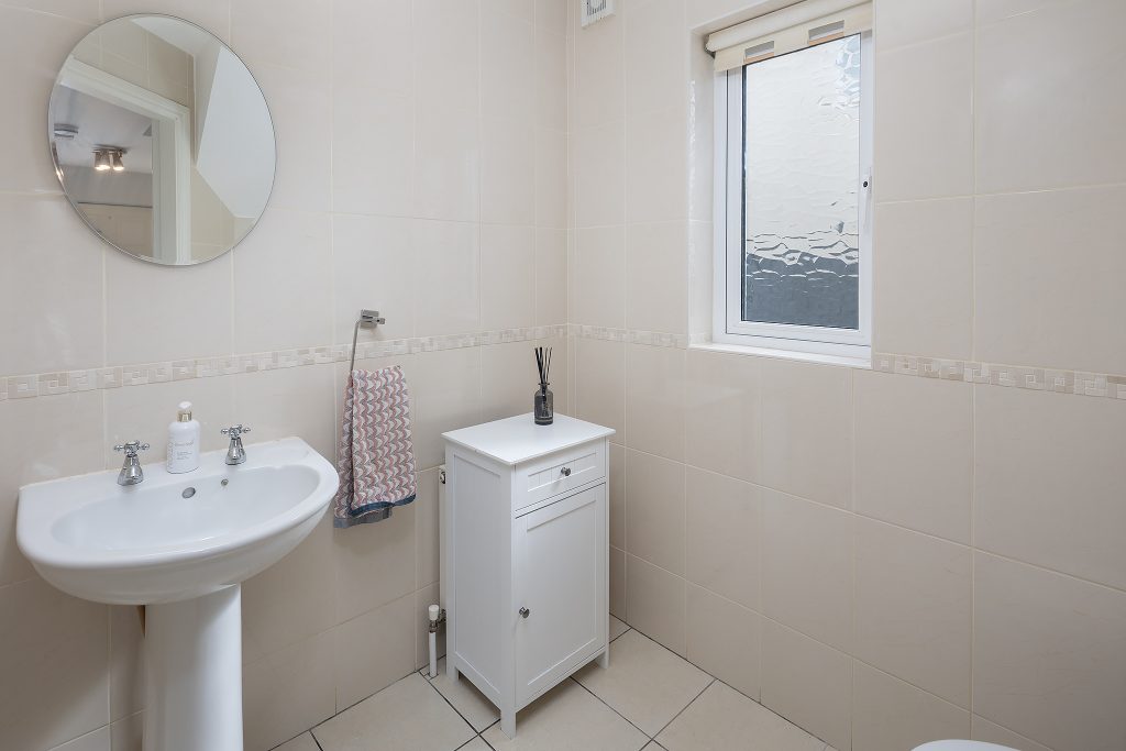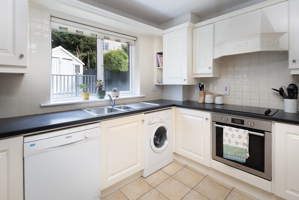 Upon entering, you are greeted by a spacious entrance hall with clever storage tucked neatly beneath the staircase. The ground floor also features a well-sized guest WC, spacious sitting room with an open fireplace, again a spacious kitchen/dining room, where patio doors open onto a generous back garden. This outdoor space is enhanced by a partial deck and a practical garden shed.