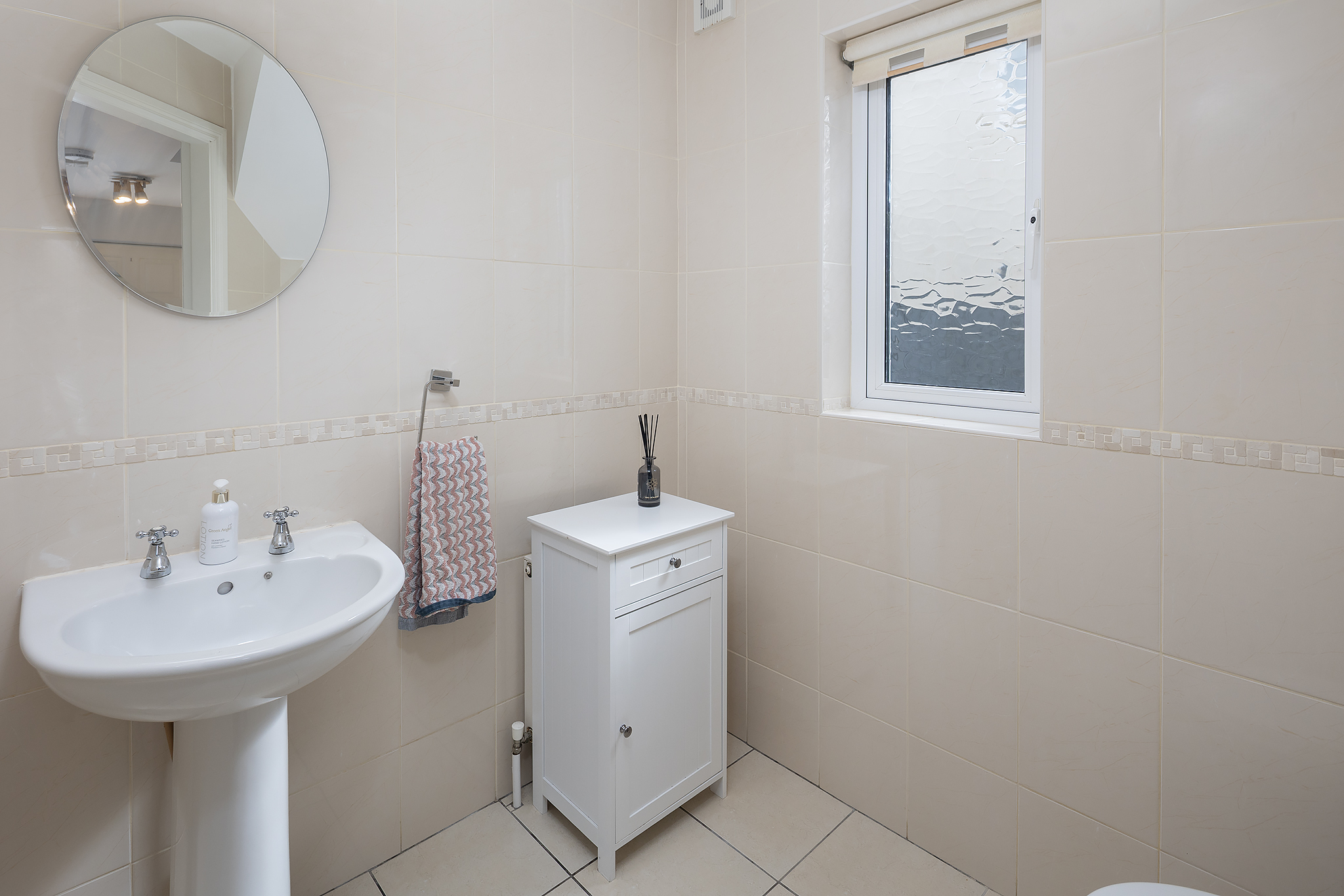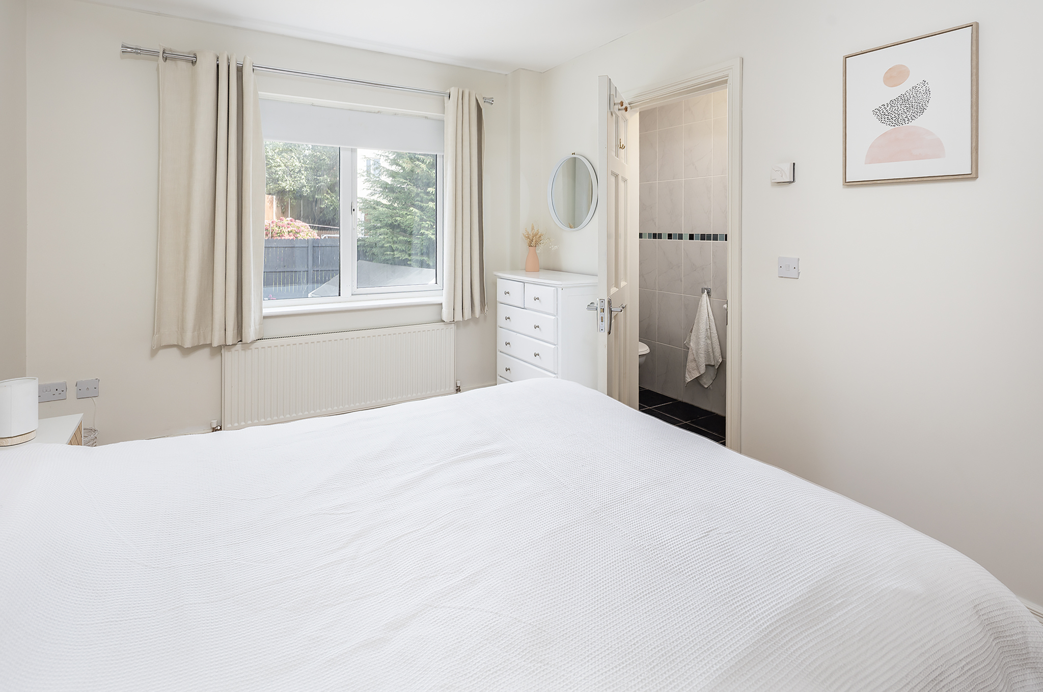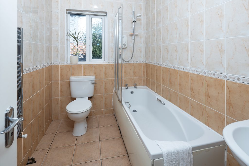 The upper level comprises three comfortable bedrooms, including a principal bedroom with an ensuite bathroom for added convenience. A fully tiled main bathroom serves the remaining rooms.