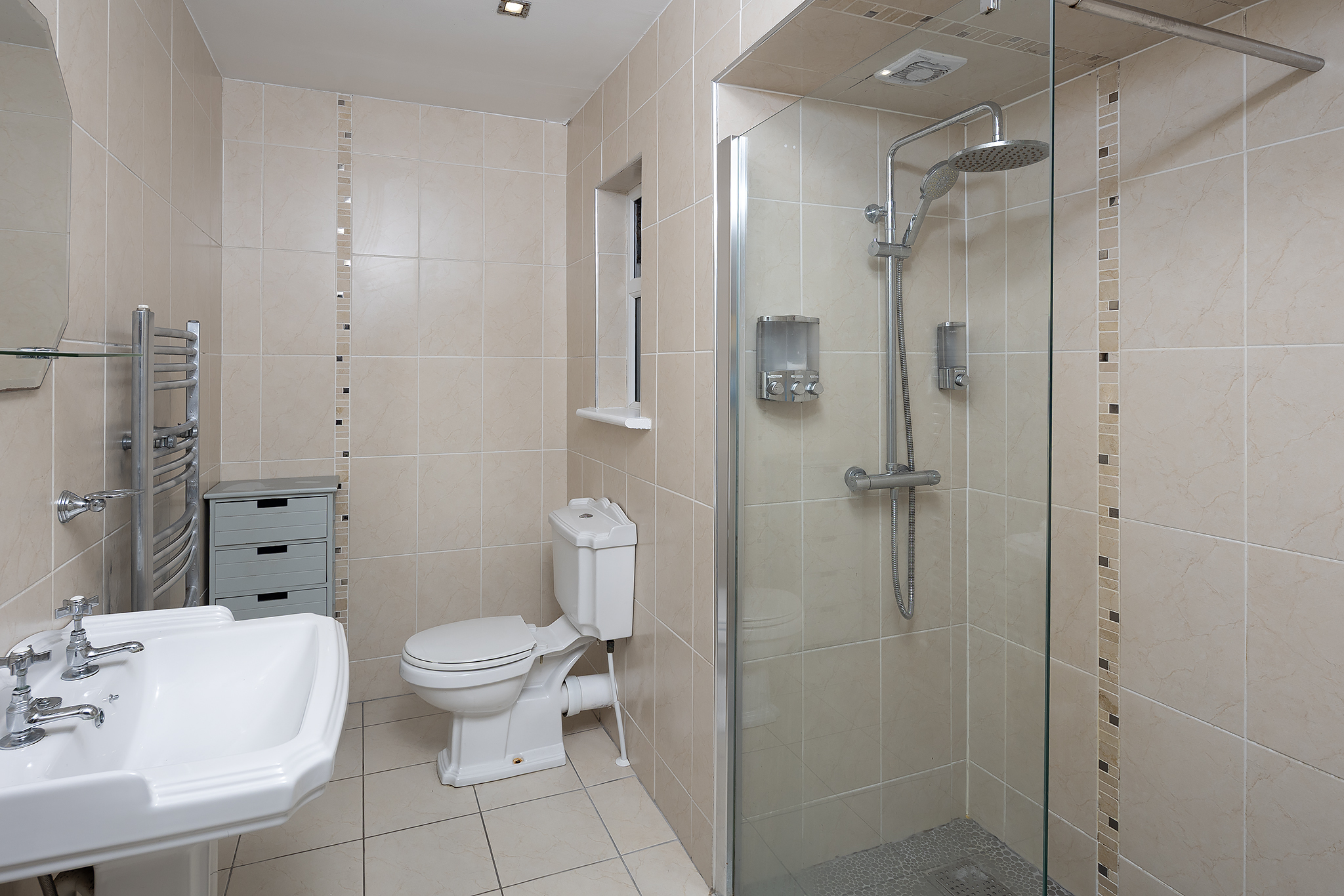 - Bathrooms x 2 – main family bathroom and en-suite; one shower powered by boiler, the other electric.