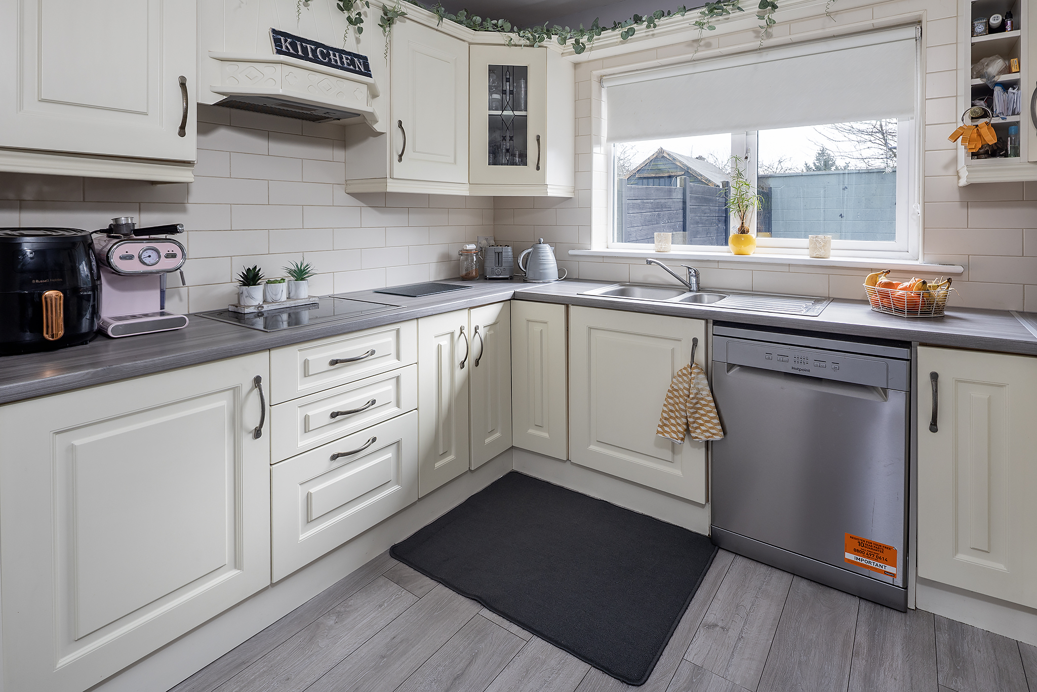 - Open-plan kitchen/dining with patio doors