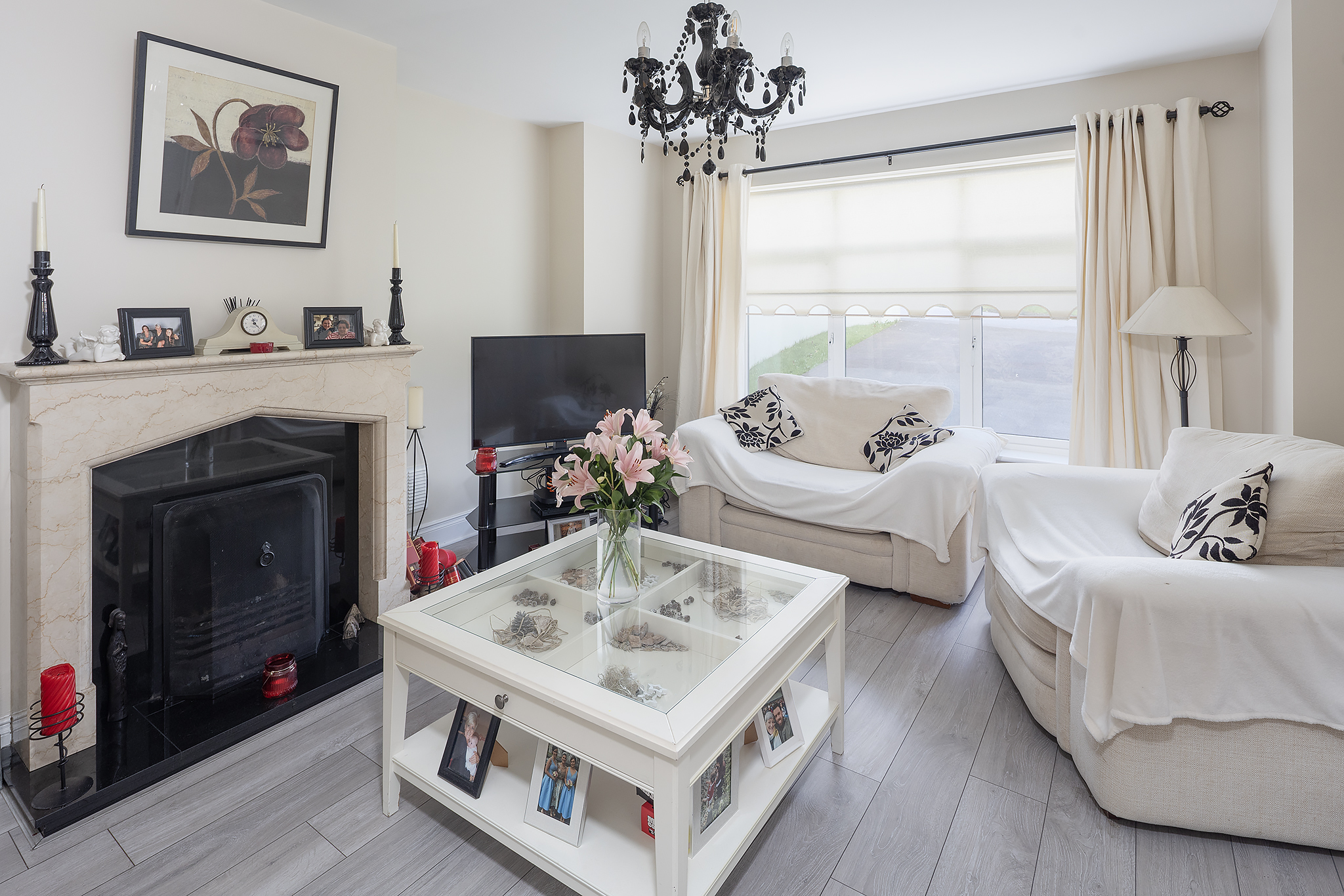 - Sitting room with bay window & open fireplace