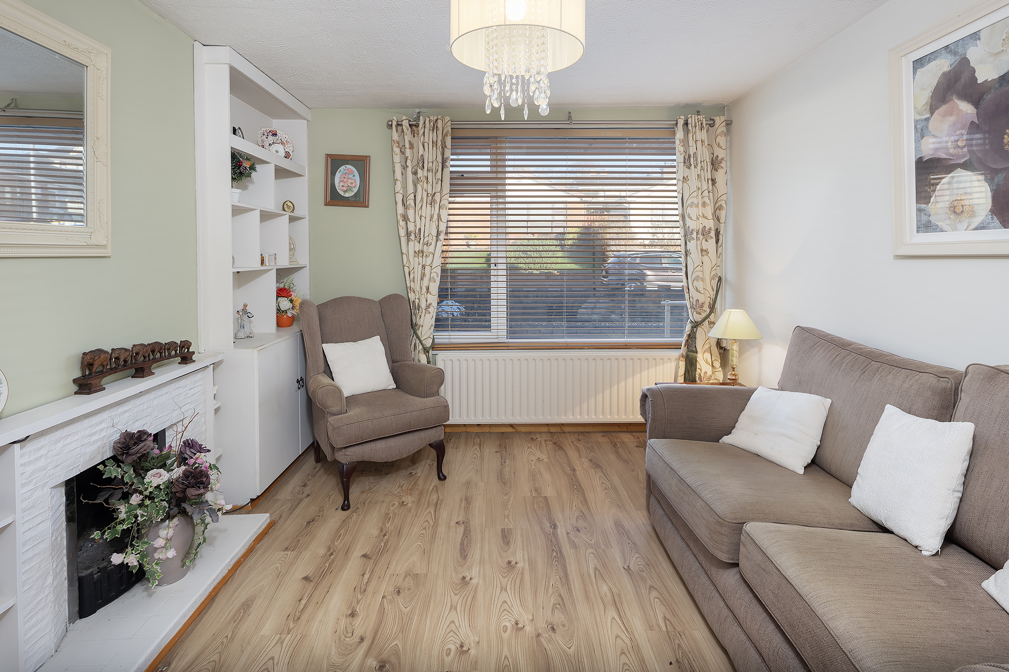 - Spacious sitting room with open fireplace