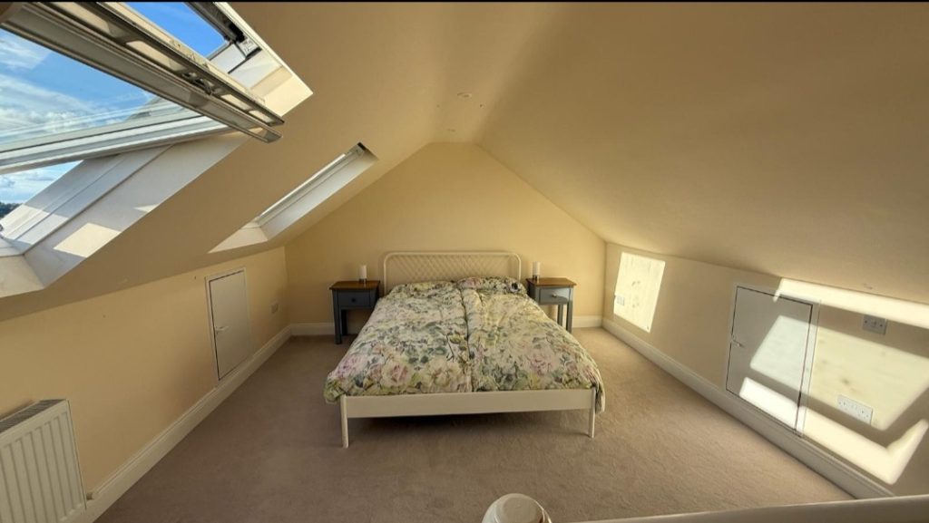 Upstairs, the first floor offers two generous bedrooms and a family bathroom. A converted attic provides an additional room, currently in use as storage, offering great flexibility for a home office, guest room, or extra living space.