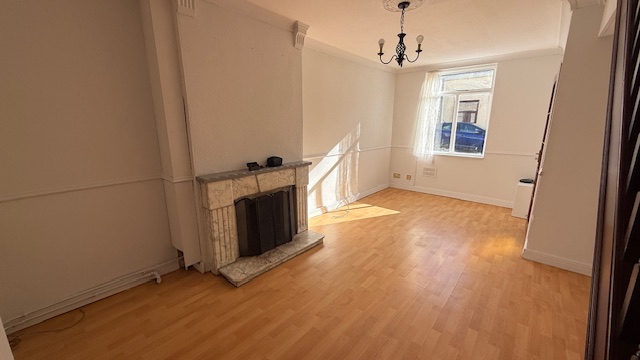 The accommodation is warm and welcoming throughout. A bright porch leads into a spacious sitting room, featuring an open fireplac. To the rear, the kitchen offers ample storage and workspace, while a modern ground-floor bathroom adds practicality to the layout.