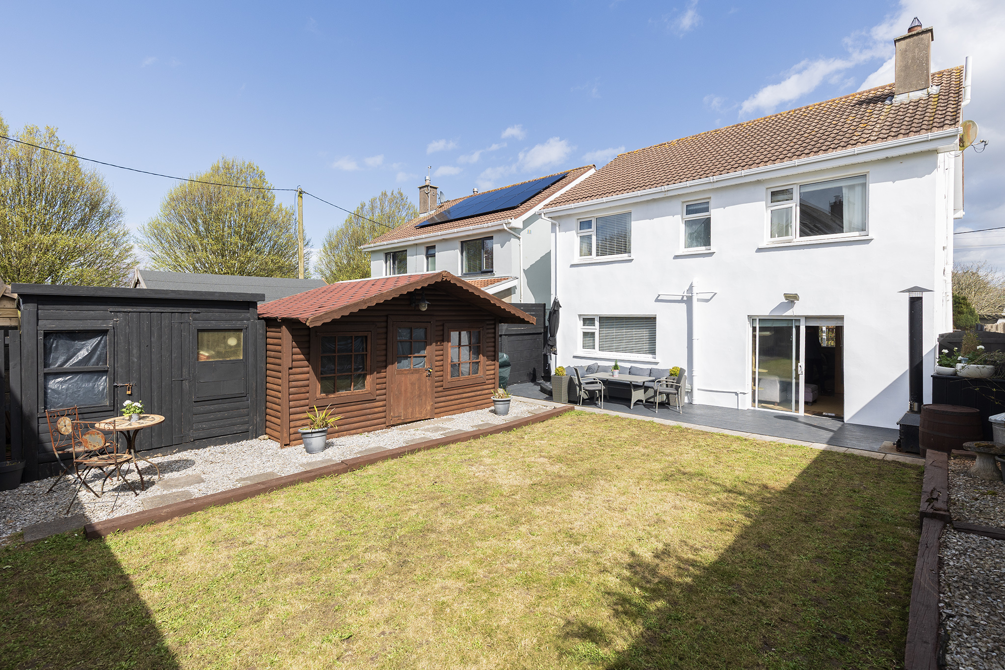Externally, the property benefits from a private driveway, front garden and patio area, while the enclosed rear garden offers excellent privacy and all-day sunshine. A detached wooden outhouse provides further flexibility, ideal for remote working, leisure, or additional storage.